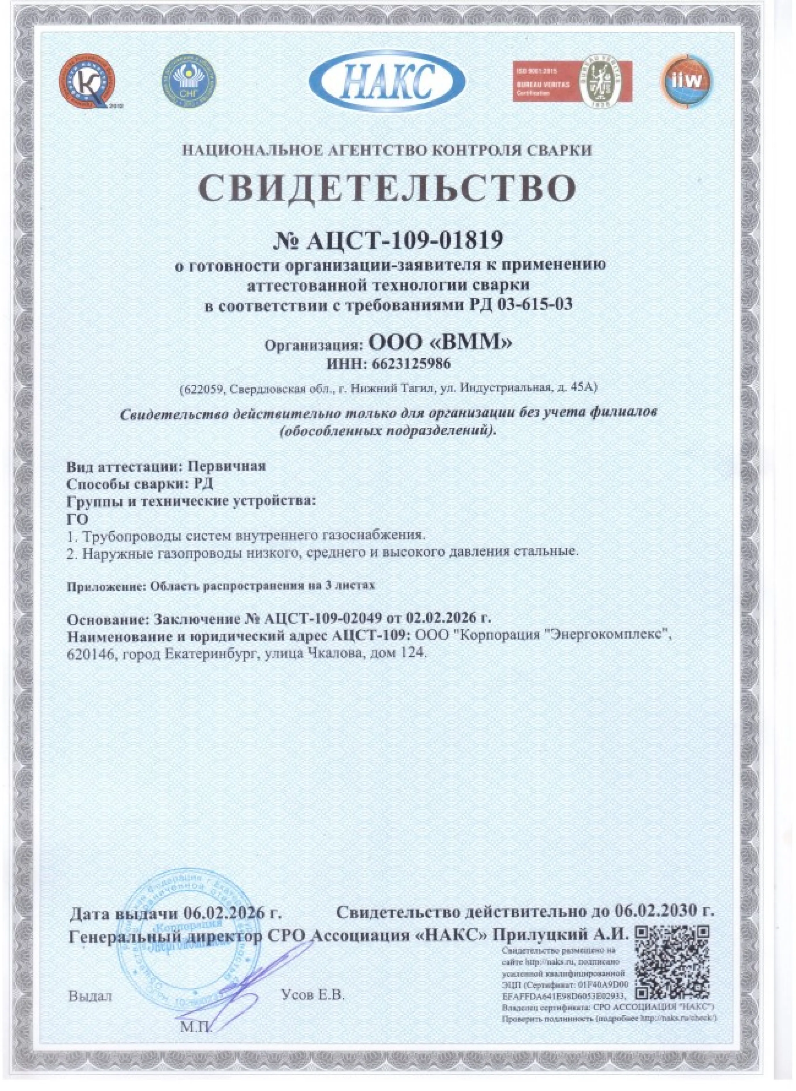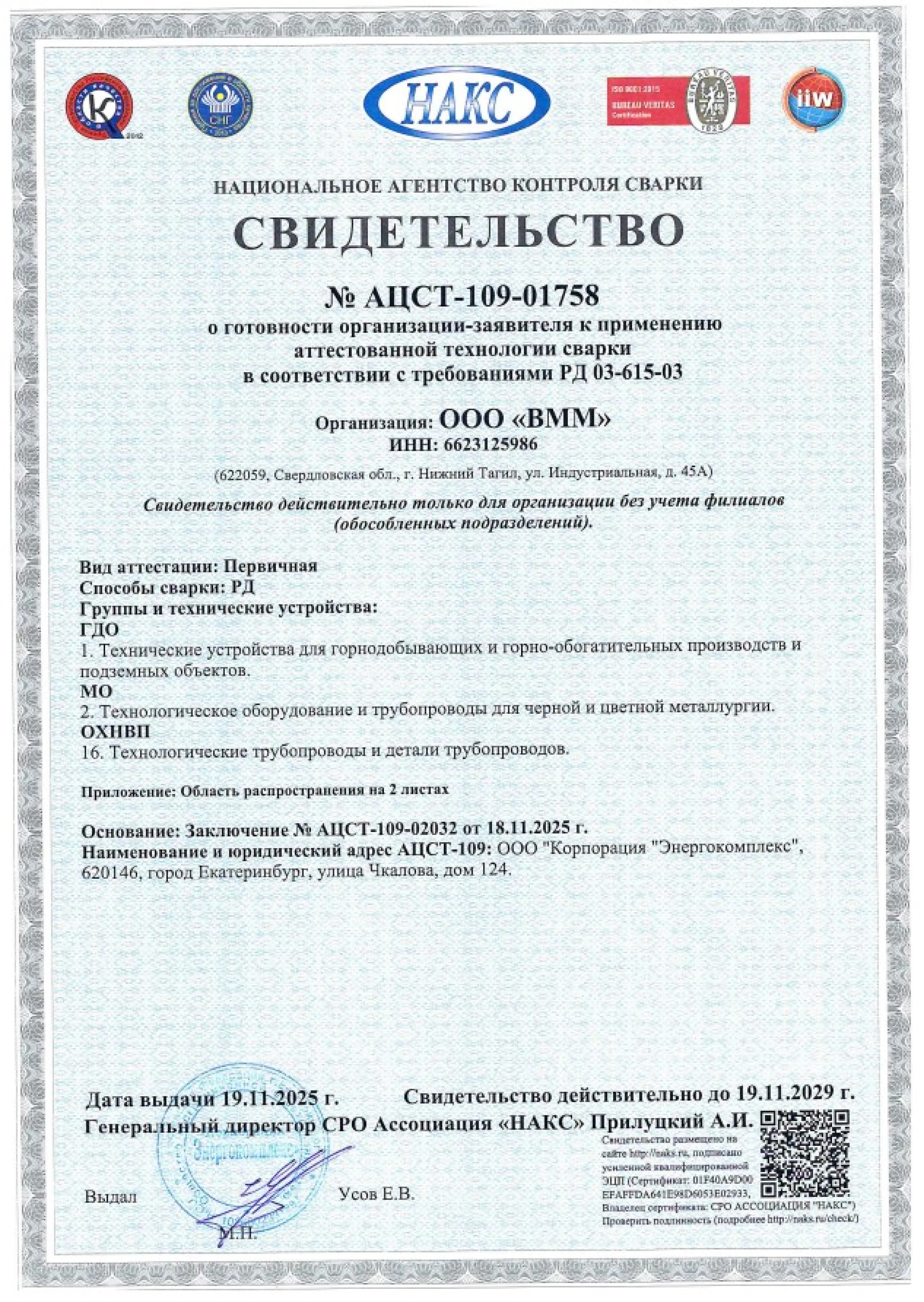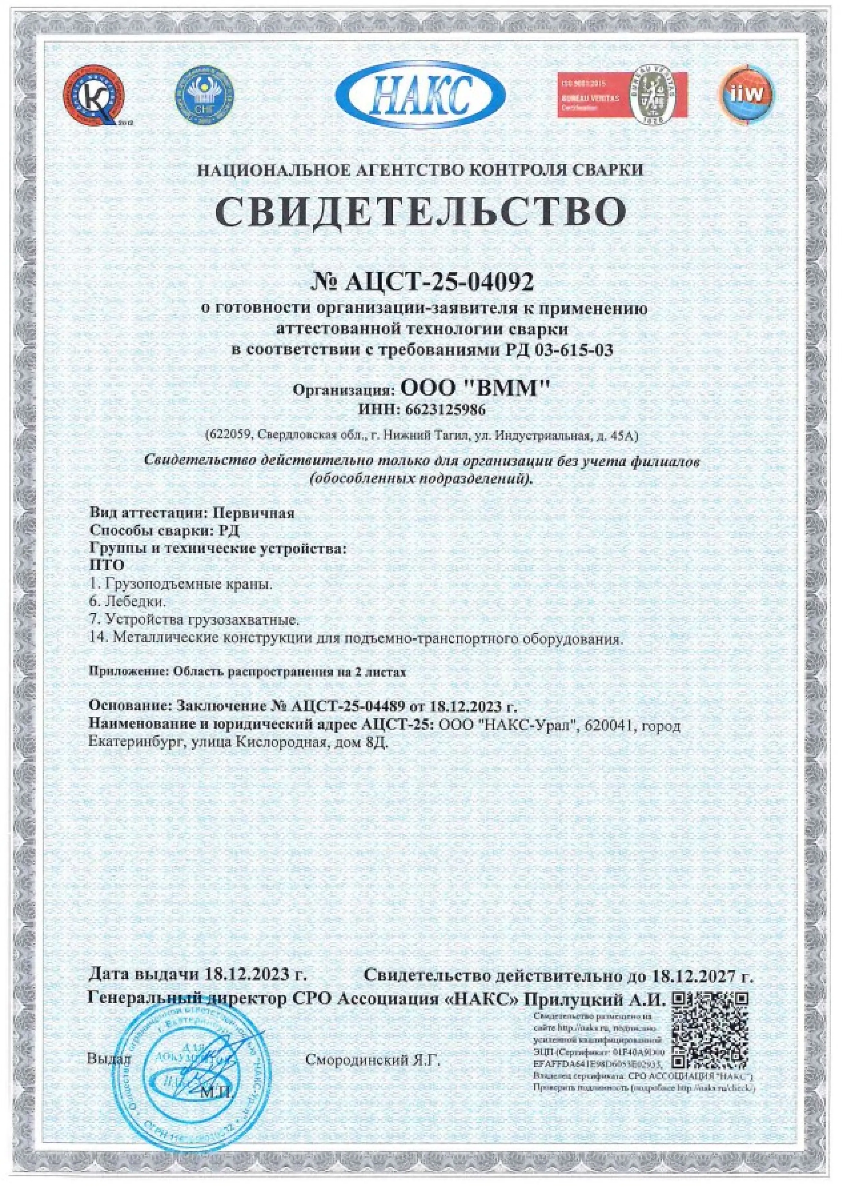 Статус ООО «ВММ» как ответственного подрядчика подтвержден членством в Ассоциации «СРО «Союз Стройиндустрии Свердловской области» с третьим уровнем ответственности. Мы можем выполнять строительный подряд до 3 миллиардов рублей по одному контракту.