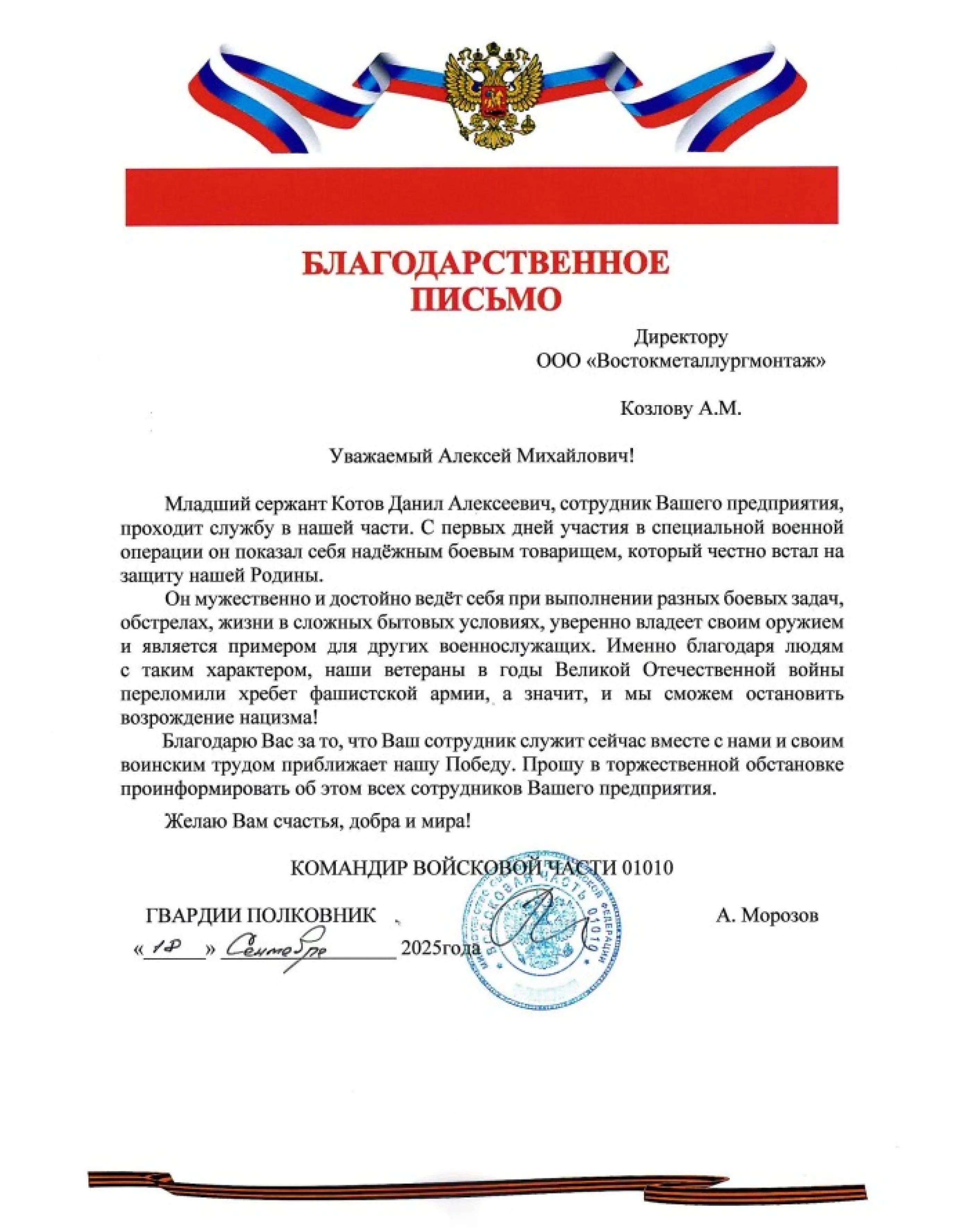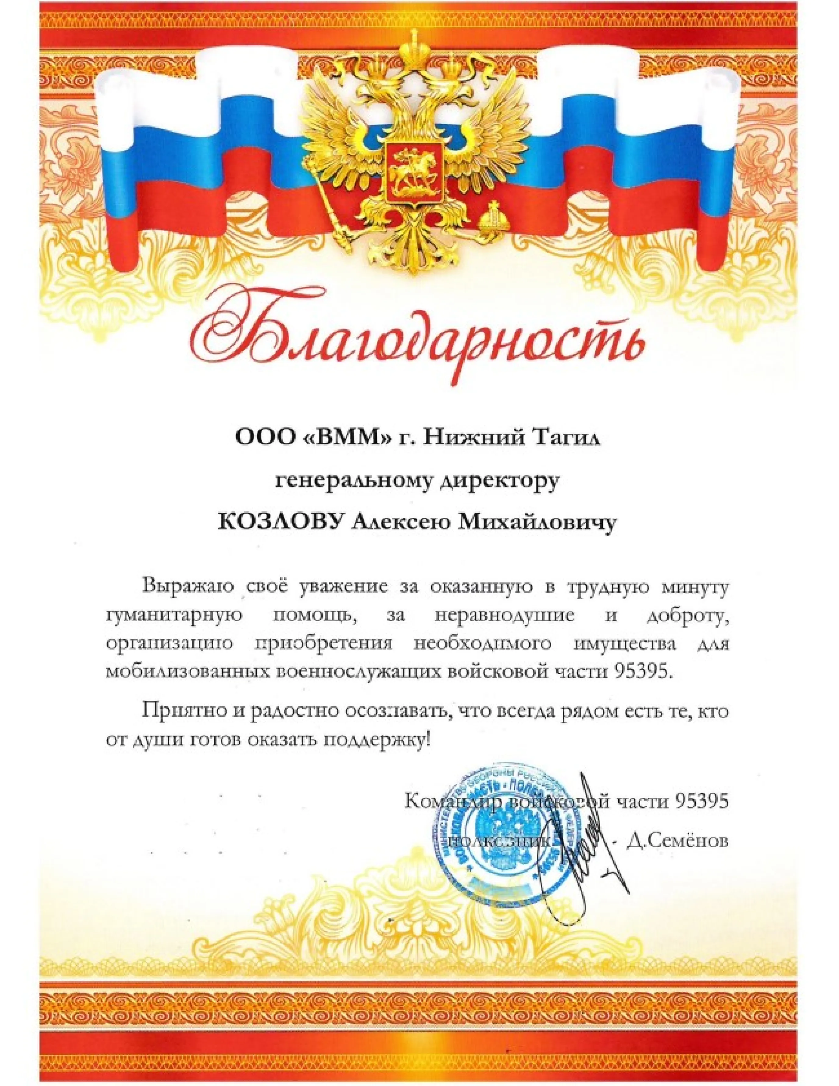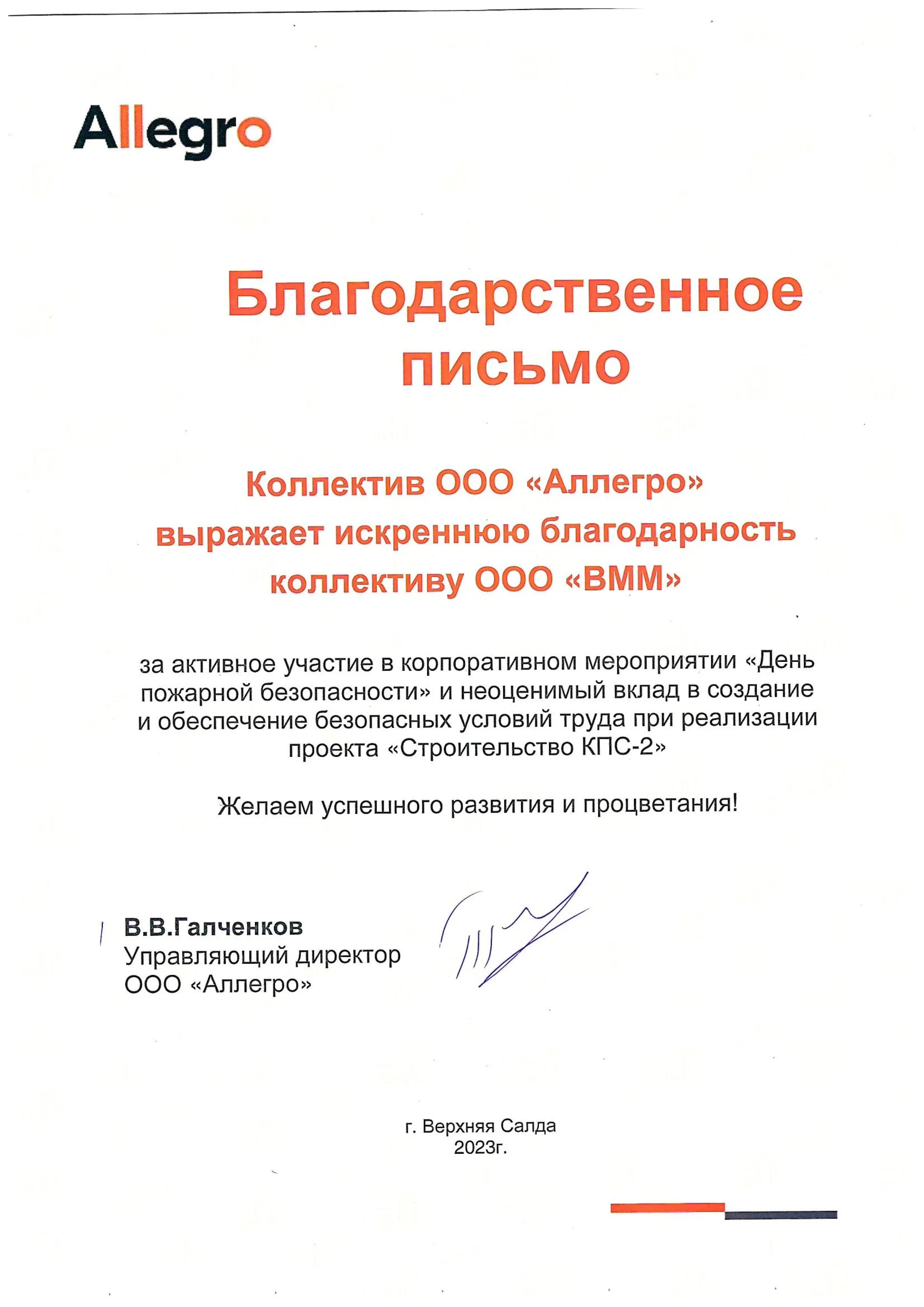 Благодарственные письма